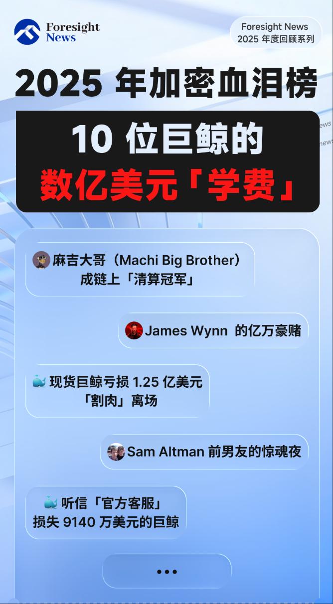 The 2025 crypto market was a year of mixed fortunes and diverse experiences. Foresight News' year-end series continues to be updated. Here you'll find firsthand accounts of the ups and downs of crypto gamblers, heartbreaking recaps of whale' failures, in-depth analyses of wealth-creating opportunities, a true reflection of the airdrop sector, and a review of the industry's most outrageous moments of the year. We invite you to take a comprehensive look at the market, reflecting on the year's gains and losses, and gaining insights into new industry trends! Recommended Articles: