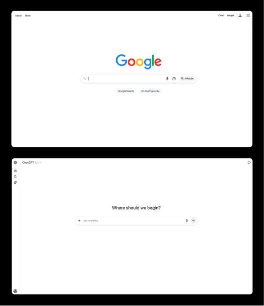 The most prevalent form of artificial intelligence today still resembles Google Search of the past. To quote McLuhan, "We are always looking into the future through the rearview mirror." Today, we see AI chatbots mimicking the Google search box. We are caught in that uncomfortable transition period that occurs with every technological revolution.