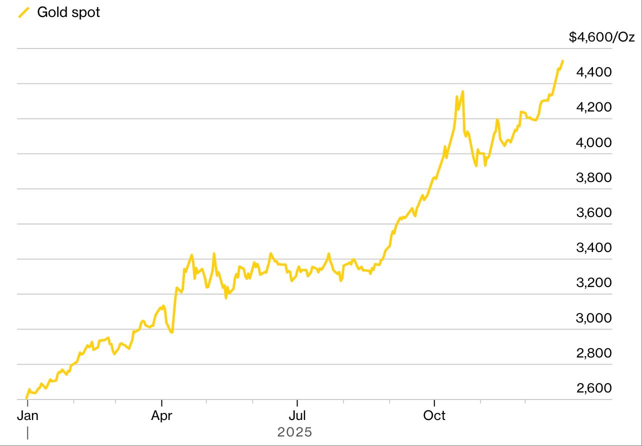 The price movements of other assets diverged: fluctuations in metals such as copper, aluminum, and even silver were partly driven by concerns about currency devaluation and partly by Trump's tariff policies and macroeconomic forces, blurring the lines between inflation hedging and traditional supply shocks. Meanwhile, gold continued its upward trend, constantly hitting new historical highs. In this area, the "devaluation trade" remains effective—but it is no longer a complete rejection of fiat currency; rather, it is a precise bet on interest rates, policy, and safe-haven demand.