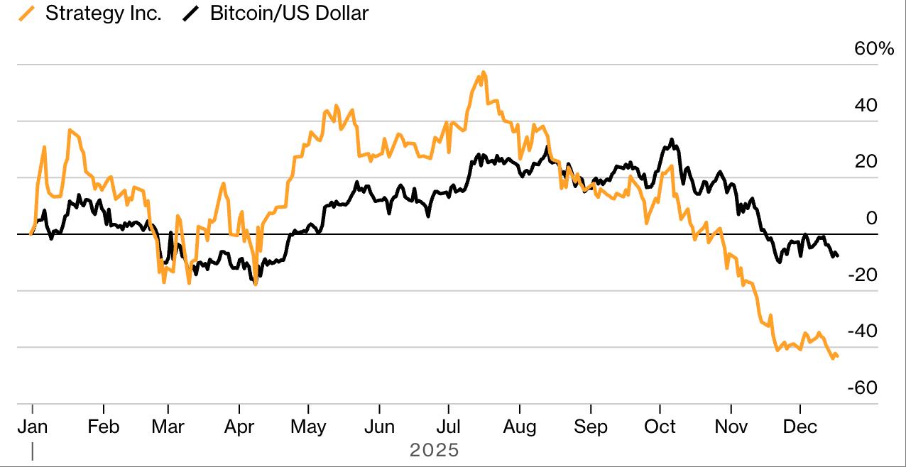 Strategy's stock performance has lagged behind Bitcoin this year.