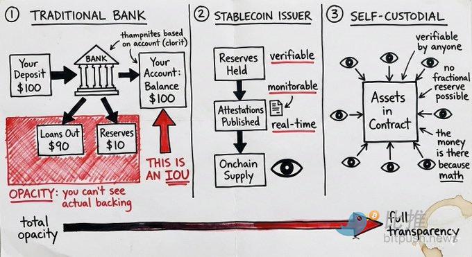 Part of the driving force behind this shift is the growing recognition that the underlying infrastructure of stablecoins offers fundamentally different assumptions of trust. This is not only because building on stablecoins is cheaper and faster (though that's true), but more importantly, because you trust the math and code, rather than the centralized entity's "trust me" promises about "where your money is."