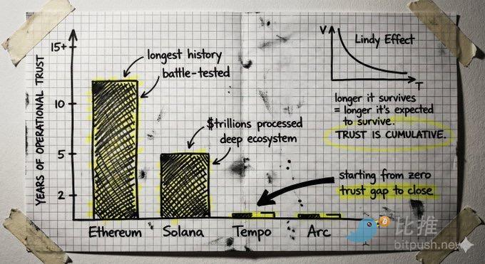 Building a new Layer 1 from scratch means rebuilding trust from zero. Blockchain is a trust machine, and trust is accumulated through operation. It stems from years of no catastrophic failures, from protecting billions of dollars without vulnerabilities, from a developer ecosystem with a deep understanding of edge cases, and from code that has withstood attacks. This is the Lindy effect applied to infrastructure.