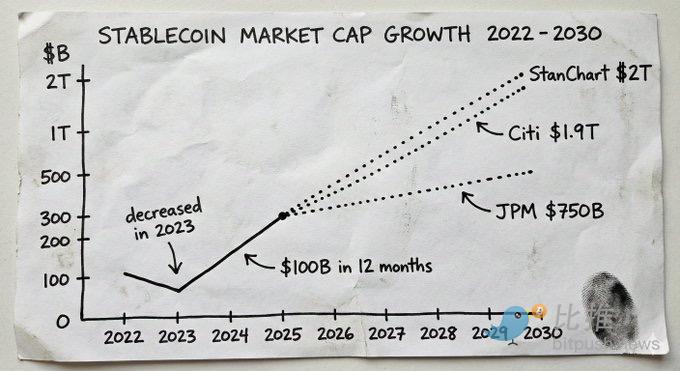 These projections reflect the institutions' strong conviction. JPMorgan Chase predicts that the market capitalization of stablecoins will reach $500 billion to $750 billion in the coming years. Citigroup's base case forecast is $1.9 trillion by 2030. Standard Chartered predicts it will reach $2 trillion by 2028. Currently, stablecoin issuers are among the top ten holders of U.S. Treasury bonds globally.