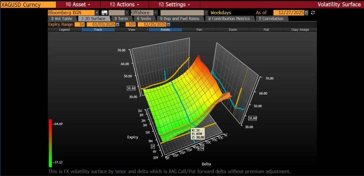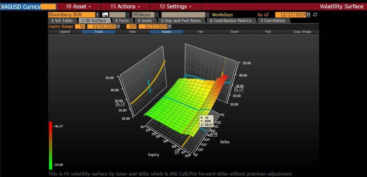 The implied volatility of at-the-money options rose from 27% to 43% year-over-year. The implied volatility of call options was even steeper— the implied volatility of out-of-the-money (OTM) strike options reached 50-70% . This indicates that the options market is pricing in the tail risk of a significant price increase.