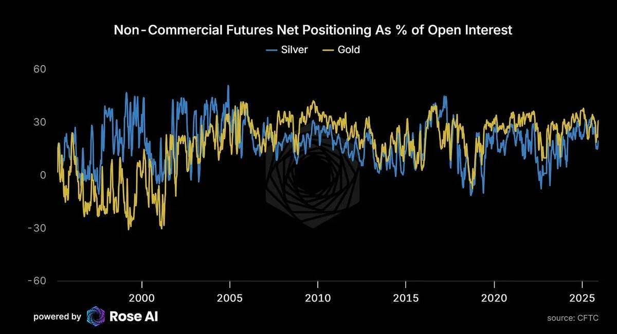 Currently, speculative net long positions account for 31% of total open interest in the gold market, while this figure is only 19% in the silver market. This suggests that although silver prices have risen, speculative positions have not reached extreme levels and there is still room for further increases .