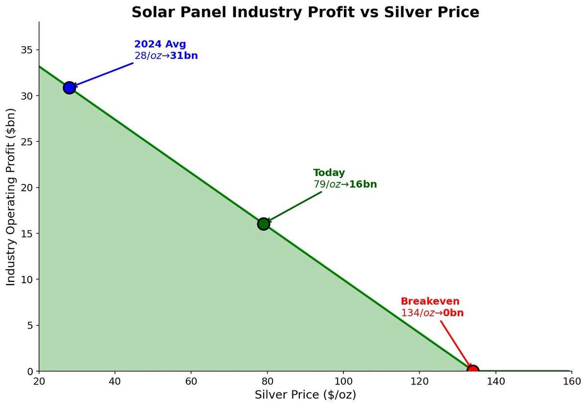- Solar energy demand is extremely inelastic to silver prices; even if prices reach $134/ounce, the demand destruction has only just begun.