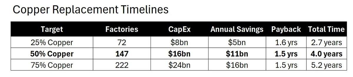 - It will take at least four years to achieve a 50% copper substitution rate.