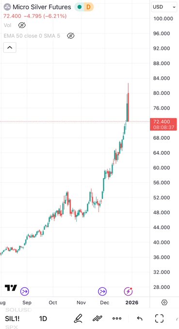 Silver drops over $10 from ATH, printing biggest daily red candle of 2025. 👀