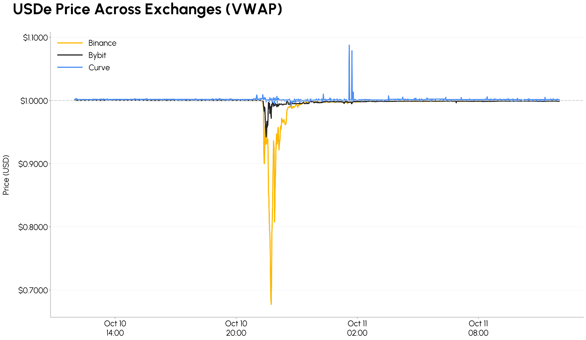 Among the more notable casualties was Ethena’s synthetic dollar, USDe. Due to its unique backing mechanism, risk profile and usage as collateral across venues, USDe was closely tied to overall leverage conditions that had built up going into the flash crash.