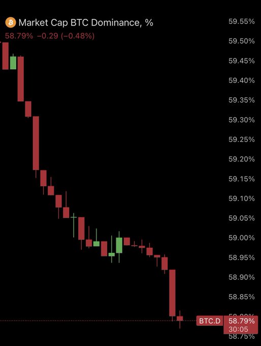 🚨Bitcoin dominance is dumping hard. Giga bullish for Altcoins.