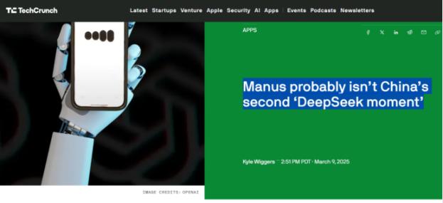 TechCrunch previously reported that Manus might not be China's next DeepSeek moment. However, Twitter founder Jack Dorsey stated shortly after Manus's release that the product was excellent.