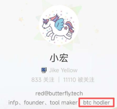 Indeed, on Xiao Hong's "Jike" personal homepage, in addition to founder, INFP, and tool maker, he also has a simple identity: BTC Holder.