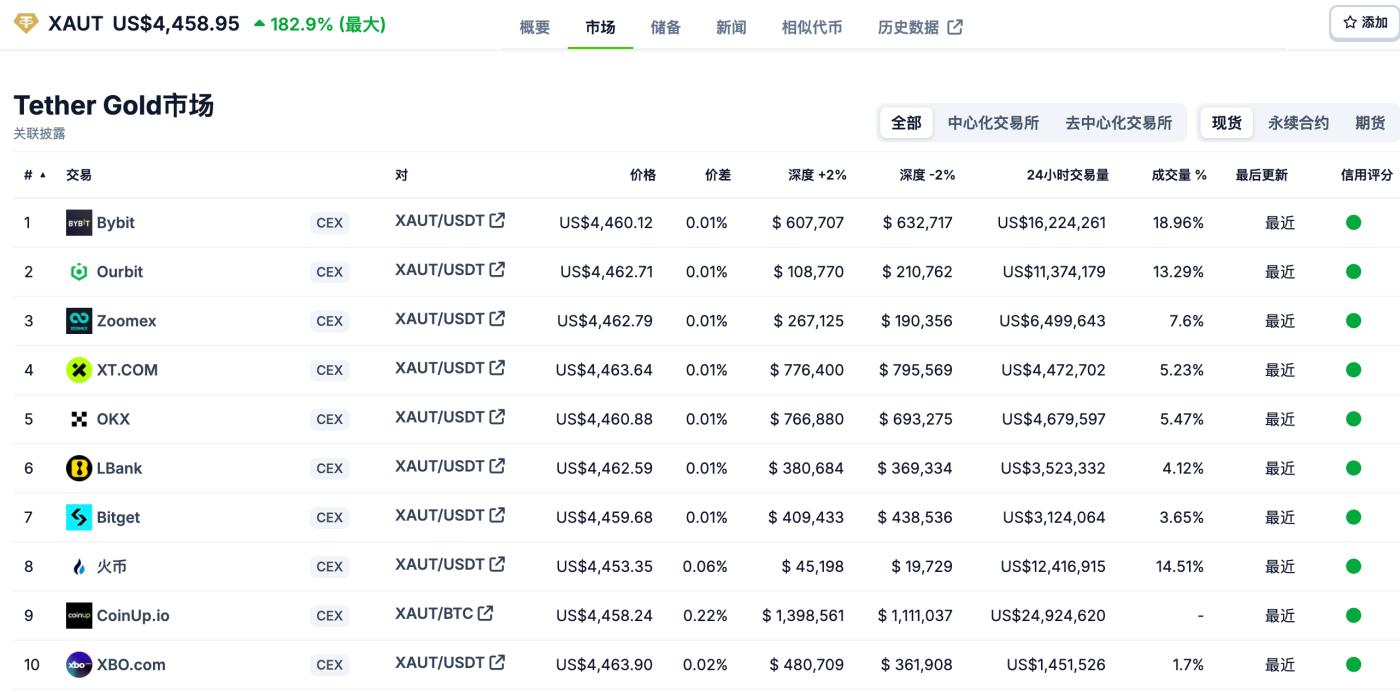 According to Coingecko , XAUT supports buying and selling on CEXs such as Bybit, OKX, and Bitget, as well as DEXs such as Uniswap, Fluid, and Curve.