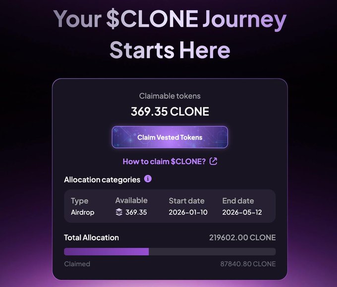 If anyone in Phase 1 @ConfidentialLyr Cookie campaign, you can check your $CLONE airdrop now.