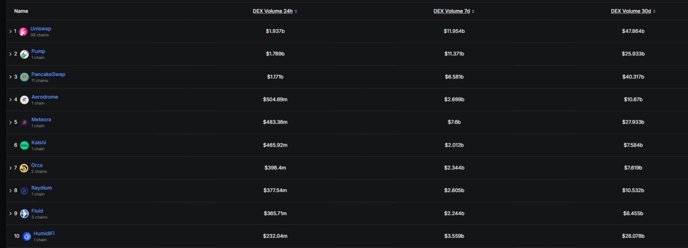 And the market context supports why Uniswap is the “default venue” for this experiment: DefiLlama’s live DEX leaderboard regularly places Uniswap among the top DEXs by 24h volume, and historical reporting has shown Uniswap leading monthly DEX volume in prior peaks.