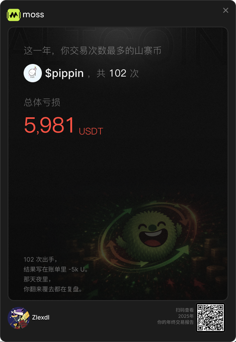 2025 is over, and my MossAI annual live trading report made me laugh so hard I almost fell over! 😂 The official statement only tells you coldly how much you lost, but MossAI, that little green-haired monster, stripped me bare of my trading soul and used super sarcastic remarks and emojis to criticize me. He really understands human nature! Let's look at the highlight (or highlight?) moment first: From May 8th to July 14th, a full 67 days of zero trading activity: "Detected as 67 consecutive days of 'empty trading' status. The account has entered dormancy, yet you are unusually calm. It turns out that not trading is also a form of self-cultivation." (The AI even added a little face of someone meditating and cultivating immortality, which made me burst out laughing.) Then on October 11th, it suddenly exploded, with 18 orders placed in a single day! "The silence before was not a plan, but a delay. When the time comes, you will execute all your hesitation at once." Haha, isn't that just me? I'm usually laid-back and easygoing, but when I can't hold back, I go all in! MossAI directly stamped my approval: You are more suited to → The Master of Lying Down and Winning: "100% risk aversion rate. What does that mean? You perfectly avoid every crash and you are never there when something goes wrong." Winning while lying down? MossAI, your sarcastic praise is so satisfying (though it hurts my feelings) 🤣 Of course, he didn't forget to finish the job: The Altcoin with the most transactions this year was $pippin, with a total of 102 transactions! Total unrealized loss: 5,981 USDT "102 shots, the result was -5k USDT on the bill. That night, you tossed and turned, reviewing the game." My late-night emo moments were perfectly replicated by AI—it felt so real! Compared to traditional annual reports, MossAI's reports are like a ruthless character who can hurl insults, use sarcasm, and engage in verbal battles. It doesn't just present statistics; it analyzes why you acted the way you did: emotional logic, trading personality flaws (or hidden strengths), and even offers personalized advice for 2026—should you continue your passive, passive approach to winning, or should you learn to be more proactive? It's January 2026 now. Instead of blindly reviewing your trades and getting more and more anxious, why not let MossAI help you uncover the essence of trading in 2025? Want to know just how "abstract" you are in the eyes of AI? Want to see just how ruthless its 2026 trading "prescription" is? Click below to generate your 2025 MossAI Annual Live Trading Report! Enter through my exclusive link and you can also directly receive a reward of 200 diamonds (limited time offer, first come, first served)! [Generate my MossAI 2025 Annual Trading Report → moss.site/2025?ref=td%2BBUD46M...…]] API Binding: Simply select "Read-only" permission. No need to enable trading or withdrawals, ensuring absolute fund security. Supports Binance, Bybit, and others. OKX, Hyperliquid, and Aster. Comments section inquiries: What's your tag? Master of easy wins? Market crash hunter? Or something even more outrageous? Let's get hurt by AI together 😏