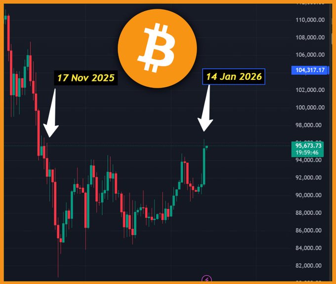 Bitcoin crossed $95,500, a level last seen on 17th Nov. 2025