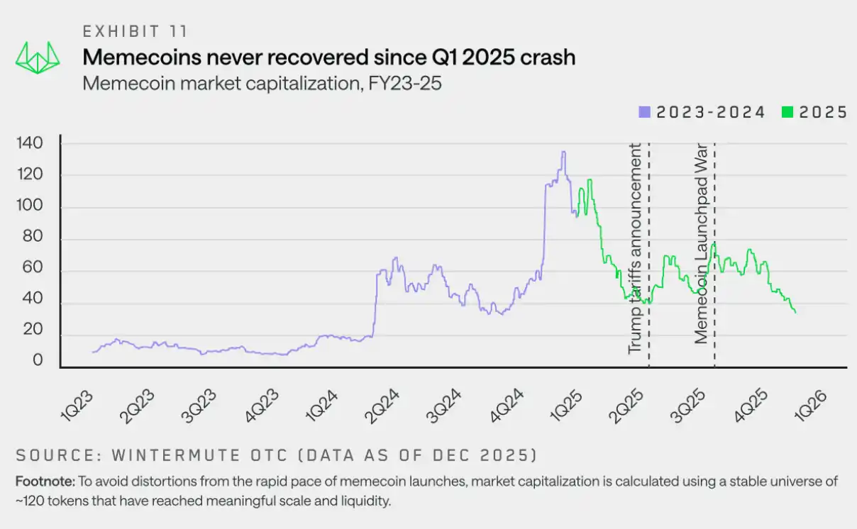 "Meme failed to recover after peaking in the first quarter of 2025, as trading became more decentralized and narrower, making it unable to regain support."