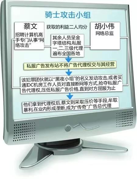 The "Knight Attack Group" is notorious in the world of private servers for the game "Legend of Mir". Its founder, Cai Wen, started out by acting as an advertising agent for private servers. In order to monopolize advertising agency rights and drive down agency prices, the group used DDoS traffic attacks and other means to massively paralyze those private server advertising sites that refused to cooperate.