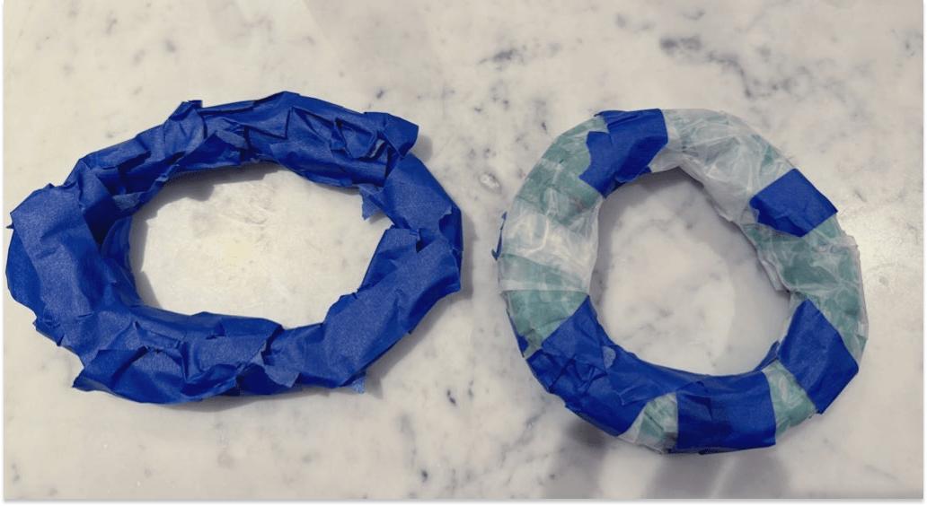 Over the next few days, he made a total of five Donut Hats in different colors and tapes. My favorite is the Orange and Green in Clear Packing Tape, but if that’s not your style, there’s probably one for you, too.