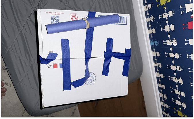 I guess that afternoon, he took some Play-Doh, shaped it into a ring, taped it up with blue masking tape (kid loves tape), and realized he might be on to something. He put the first donut hat in a construction-paper envelope, put the envelope in a box, and taped that shut, too, for safe keeping. Then he got to work.