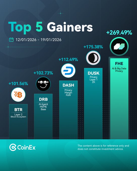 This week’s top performers ⬆️ 1. $FHE 2. $DUSK 3. $DASH 4. $DRB 5. $BTR Did you catch the wave?