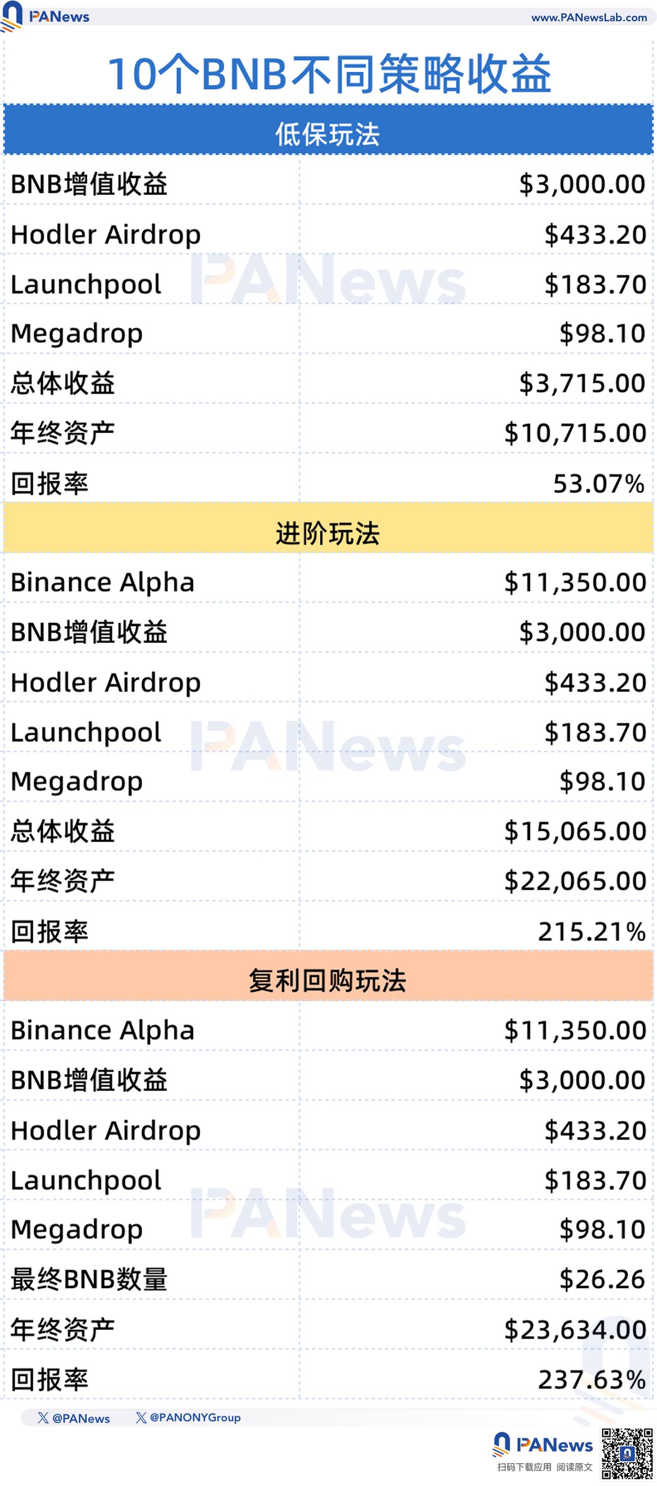 The answer is: although the logic has changed, it still works remarkably well. If 2024 was about reaping the benefits of Launchpool's "common pot," then 2025 is about enjoying the benefits of Binance Alpha's "private kitchen." In this article, PANews will review the true ledger of holding 10 BNB this year, combining Binance's official "2025 Annual Report" and exclusive data calculations.