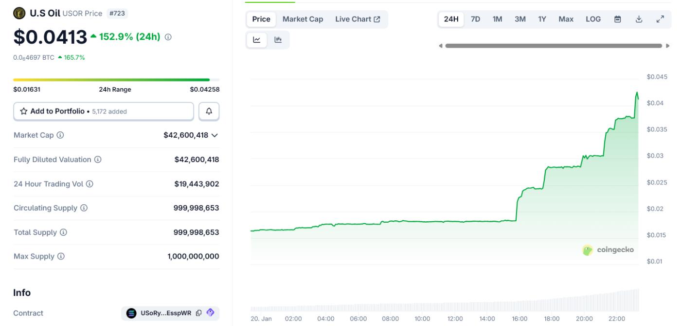 This wave of news appears to have spilled over into the crypto market, with traders quickly associating USOR with a political narrative, even though the Token has absolutely no verifiable link to the U.S. government's oil reserves.
