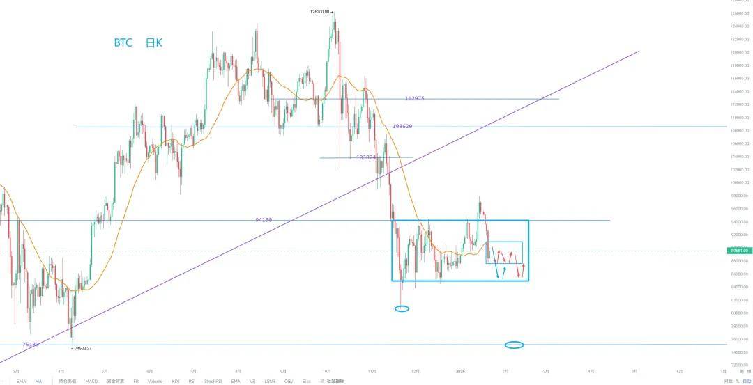Short-term resistance lies in the 90180-90883 range (mainly observe whether this area will form the high point of subsequent daily consolidation). For smaller timeframes, the main selling pressure area is 90883-91490 (potential support/resistance, not for speculation).