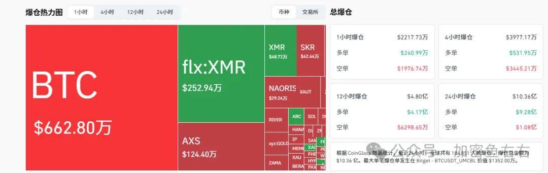 In the past 24 hours, a total of 184,883 people worldwide have had their accounts liquidated, with a total liquidation amount of $1.036 billion. This is the largest single-day liquidation in two months! Although the overnight drop hit a new low, trading volume has gradually shrunk, indicating that the selling pressure from short sellers is decreasing as the price falls further, which is a potential signal of a reversal between bullish and bearish trends.