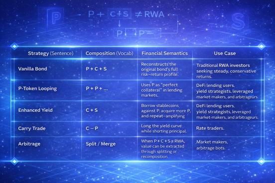 This is also the charm of "language"—using a limited vocabulary, through different combinations, to express infinite intentions. More importantly, these combinations not only serve traders, but also the DeFi protocols themselves: lending protocols, AMMs, and yield aggregators can all directly use P/C/S as callable financial primitives.