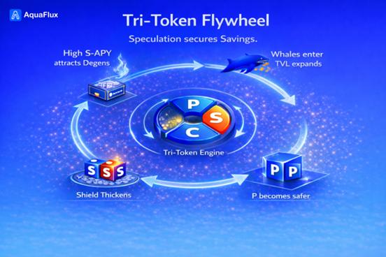 Just as Solidity is the programming language for smart contracts, AquaFlux is the programming language for asset risk. Through a standardized syntax—P (Principal), C (Coupon), and S (Shield)—it "translates" real-world assets into on-chain, recognizable, programmable, and composable financial primitives. Within this language system, Tri-Token is merely a surface-level form; its core is structured layering (Tranching) and a risk waterfall, enabling DeFi protocols to deconstruct and restructure trillions of dollars worth of traditional assets as easily as handling LEGO bricks.