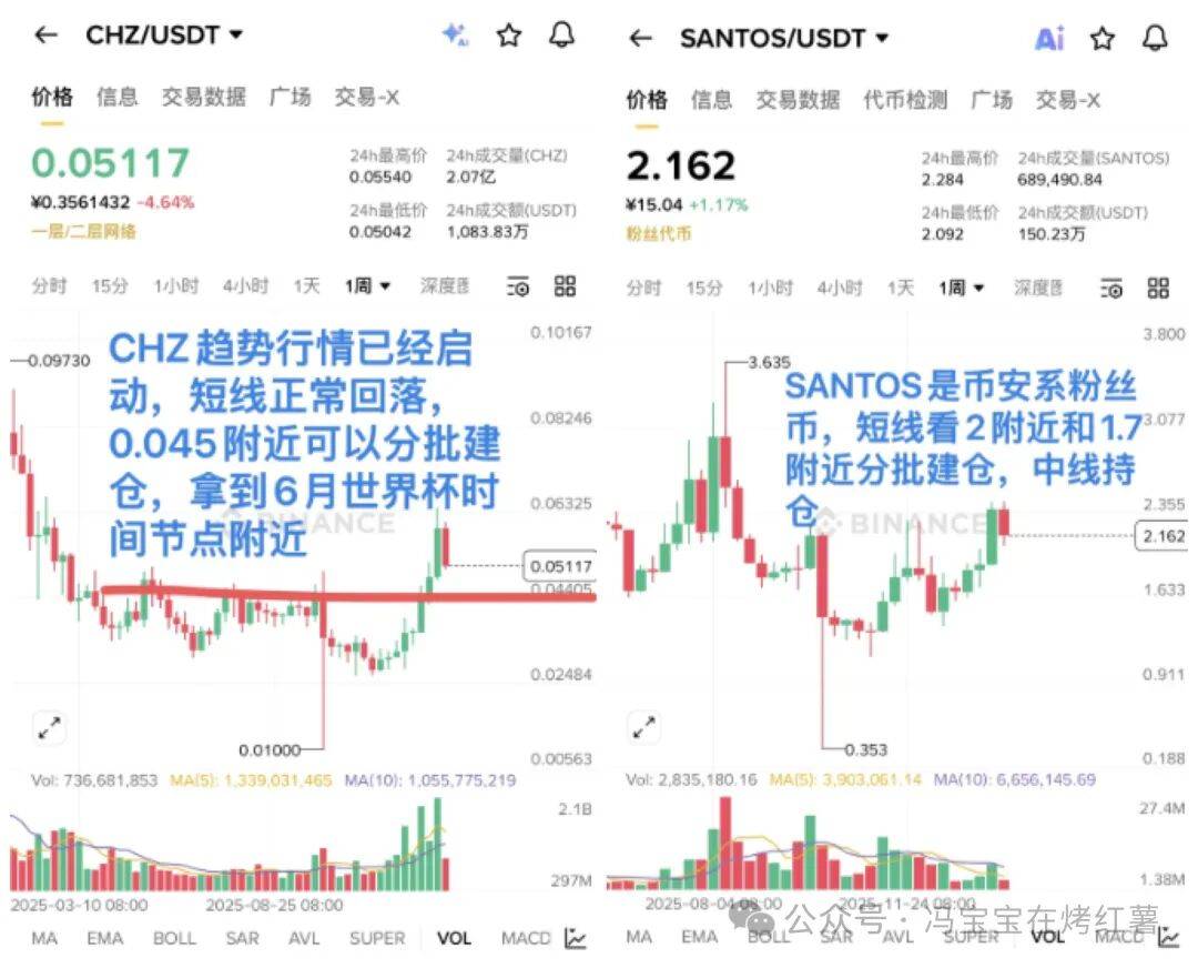 Considering liquidity and market activity, the leading cryptocurrencies $CHZ and Binance-backed $SANTOS are more worthy of attention, while other niche coins are riskier and more like lottery tickets. Currently, overall trading volume remains low, indicating that there are not many investors yet, and the market is still in the accumulation phase.
