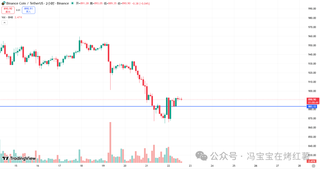 Today, keep a close eye on the key level of 883. As long as the price doesn't fall below this level, the 1-2 hour chart could see a continued rebound, with resistance levels at 894, 908, and 920. However, if the price breaks below 883 on the 1-2 hour chart, this small rebound will be over, with support levels at 875, 864, and 856 .