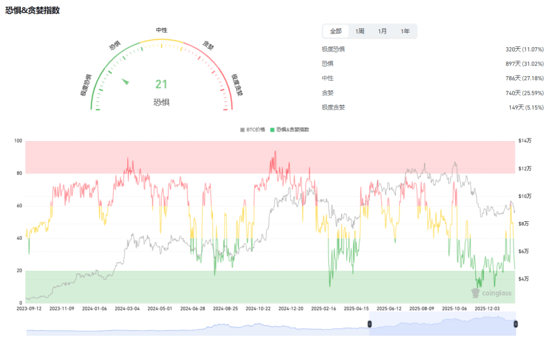 The current market sentiment is 21 (fear), indicating a generally pessimistic outlook due to persistent panic, macroeconomic instability, and cautious leverage. However, the RSI7 has fallen to 18.2, placing it in oversold territory, suggesting a potential short-term recovery. Also, keep a close eye on Bitcoin's market capitalization share: holding above 59.1% is normal; a drop below 58% could trigger a rise in Altcoin!