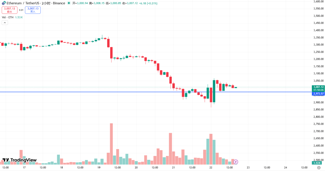 Ethereum's key level today is 2973! If it retraces but doesn't break through, a rebound on the 1-2 hour chart is likely! Resistance levels are at 3065, 3110, and 3158; just push for it!