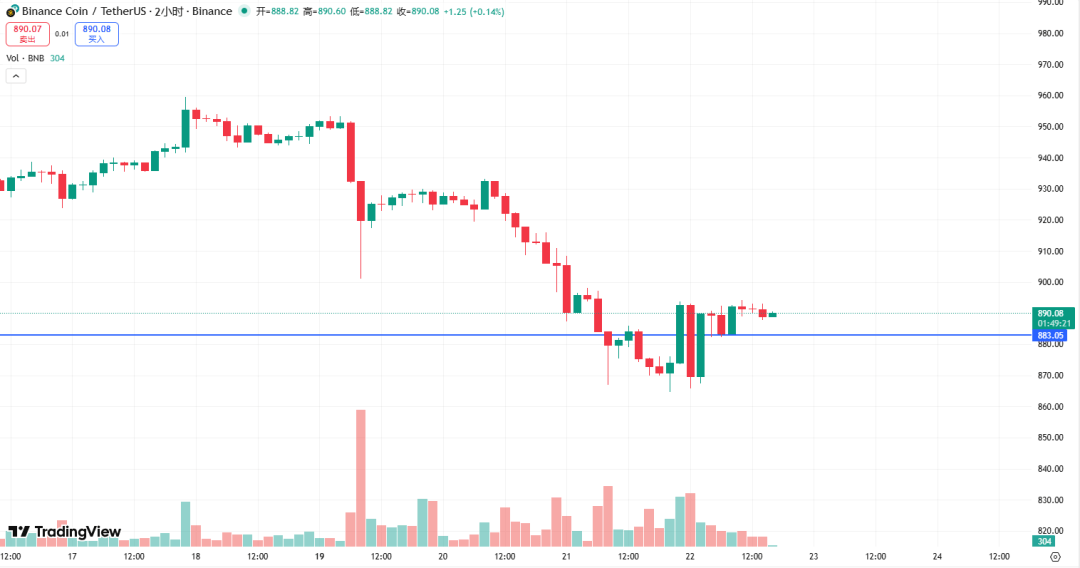 BNB is currently focused on the 883 level! If it retraces and holds above this level, the 1-2 hourly rebound will continue! Resistance levels are at 894, 908, and 920.