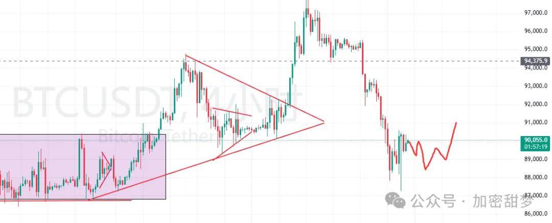 On the weekly chart, the candlestick pattern shows a bearish engulfing pattern, indicating strong bearish momentum. The overall trend remains downward, so the strategy is to short on rallies. As long as the price hasn't broken below 87,000, buying on pullbacks is also an long.