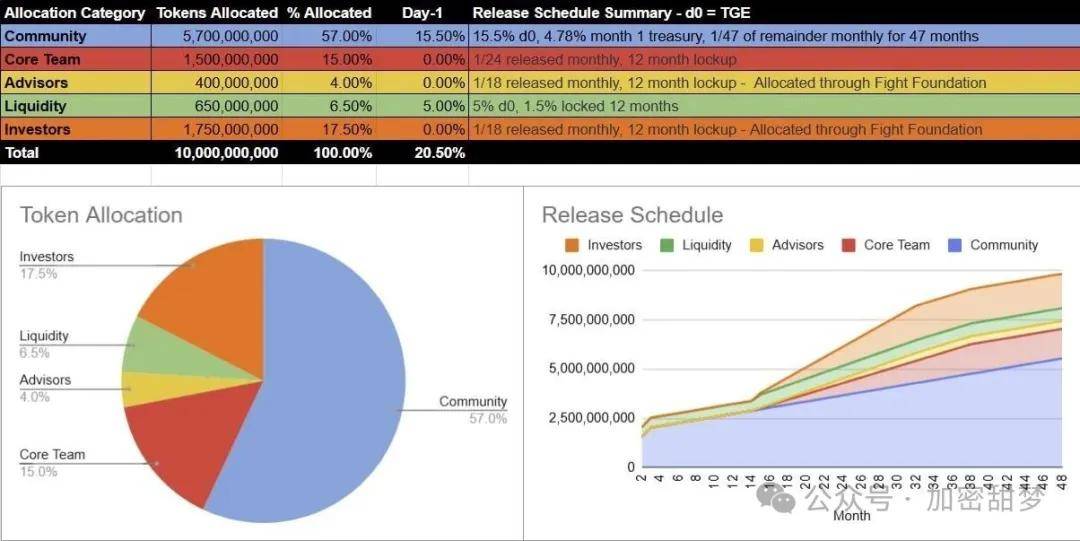 Total token supply: 10 billion; Initial circulating supply: 2.05 billion; Pool price: 0.02U, corresponding to a circulating market capitalization of 41 million and an FDV of 200 million; Pre-market price: 0.025U, corresponding to a circulating market capitalization of 51 million and an FDV of 250 million.
