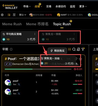 这两天各家钱包都有更新,其中最亮眼的应当是Binance Wallet Web3,上线了Topic Rush板块,可以说是深得我心哈哈。