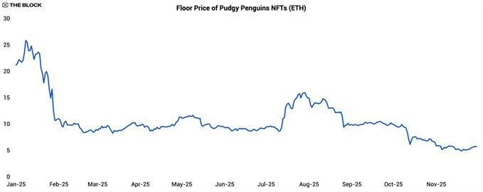 Meanwhile, its ecosystem token, PENGU, has also underperformed, falling by about 60% this year, though still slightly better than NFTs themselves. This suggests that for investors looking to invest in the Pudgy brand, the token may have become a more convenient and liquid investment tool, even though its economic model is not directly linked to merchandise sales or media revenue.