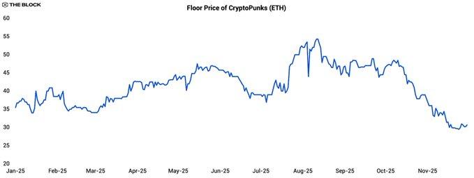 Even during a quiet year, CryptoPunks did garner some brief attention. The series' base price surged by approximately 40% between July and August 2025, peaking at around 54 ETH in mid-July. However, its price subsequently nearly halved, falling back to around 30 ETH at the time of writing.