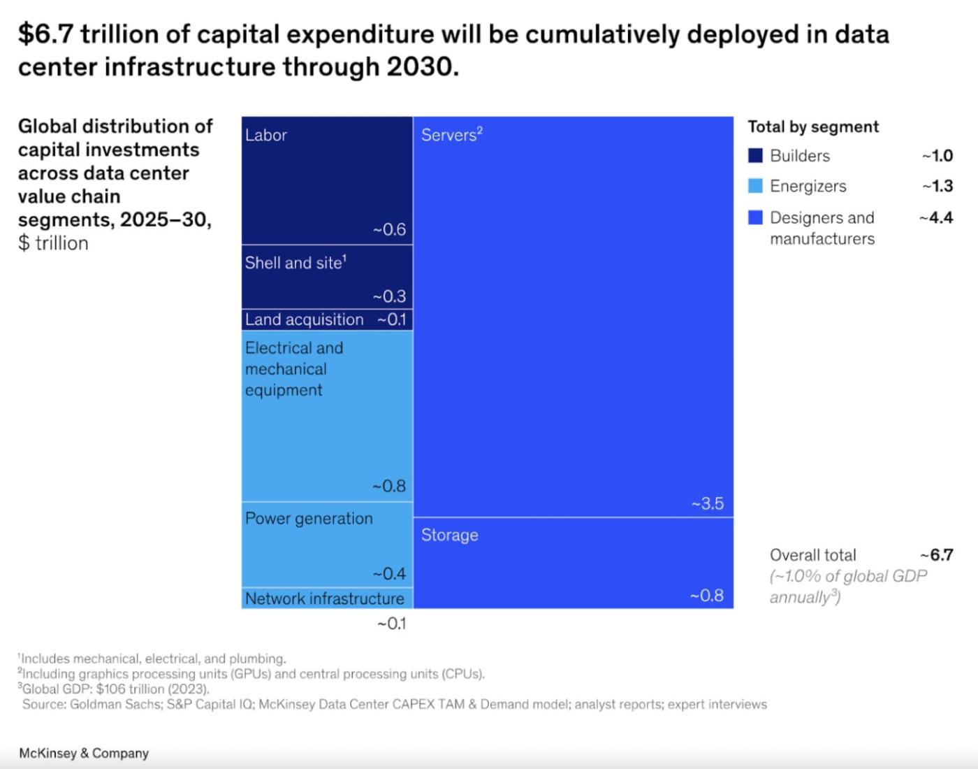 Beyond capabilities, existing numbers on AI-related capital expenditures and estimates of the next 4-5 years indicate this technology would be far more transformative than normal, especially when we look at AI spend as a percentage of GDP contrasted against historical tech buildouts (like railroads or telecom).