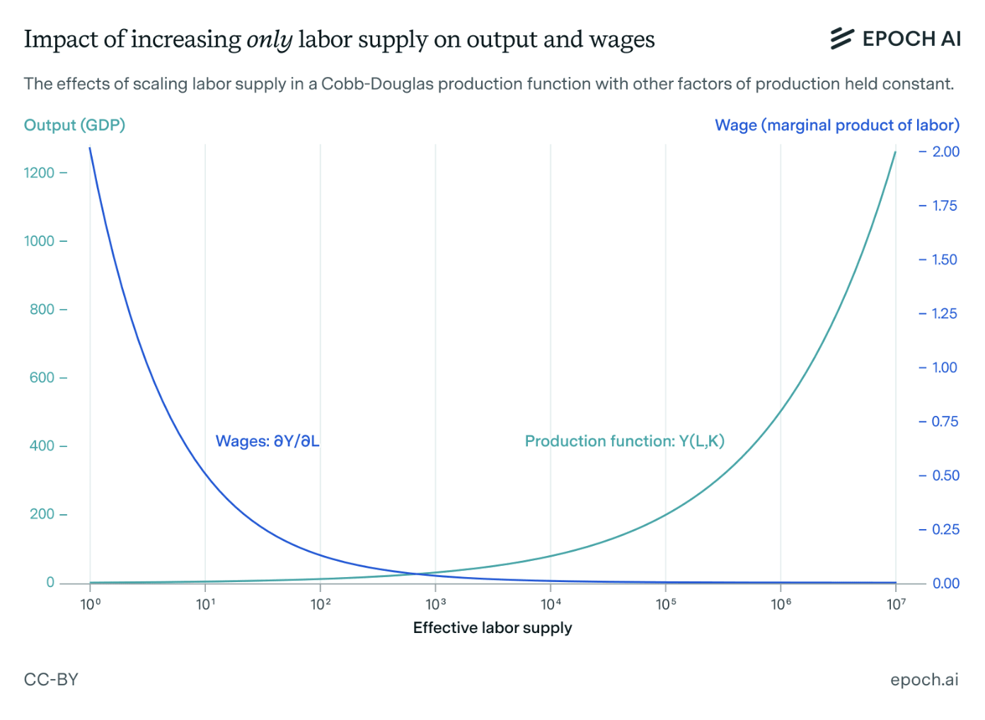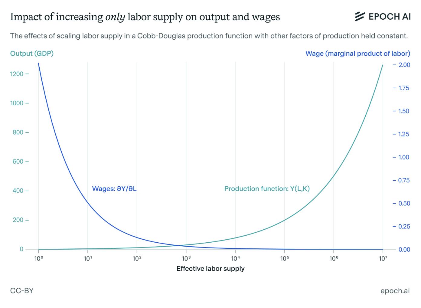 Building off of a basic Cobb-Douglas Production Function, Barnett examines how previous levers used to raise wages - like improving technology or increasing the capital stock to a certain point - fail to work, should we massively increase labor supply.