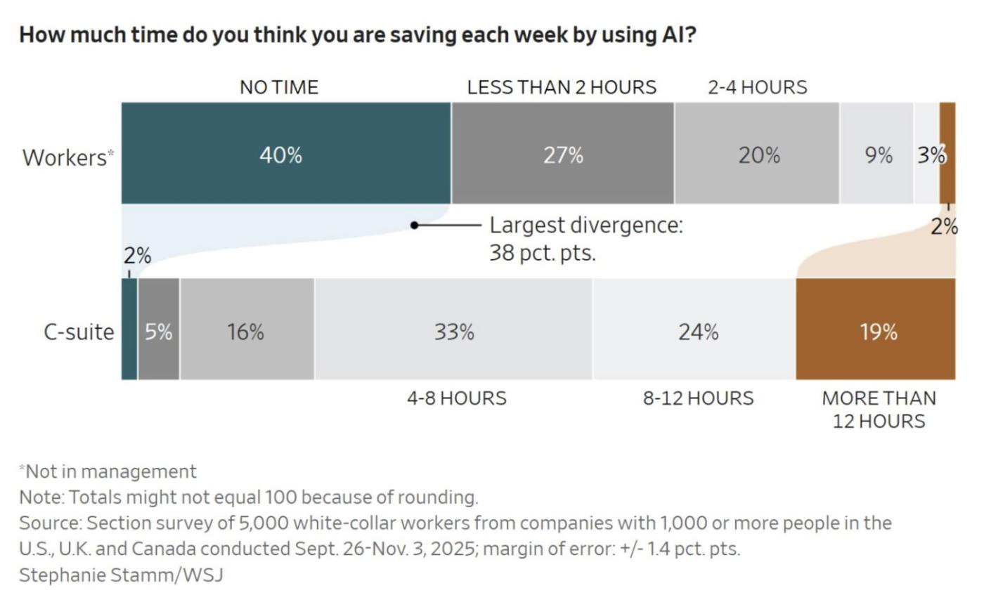 Diffusion is complicated. We might have an idea of what jobs will be automated first, or more general timelines like the pyramid replacement theory discussed by Luke Drago and Rudolf Laine, but even official surveys show employees are struggling to come to a consensus on what AI is good at: