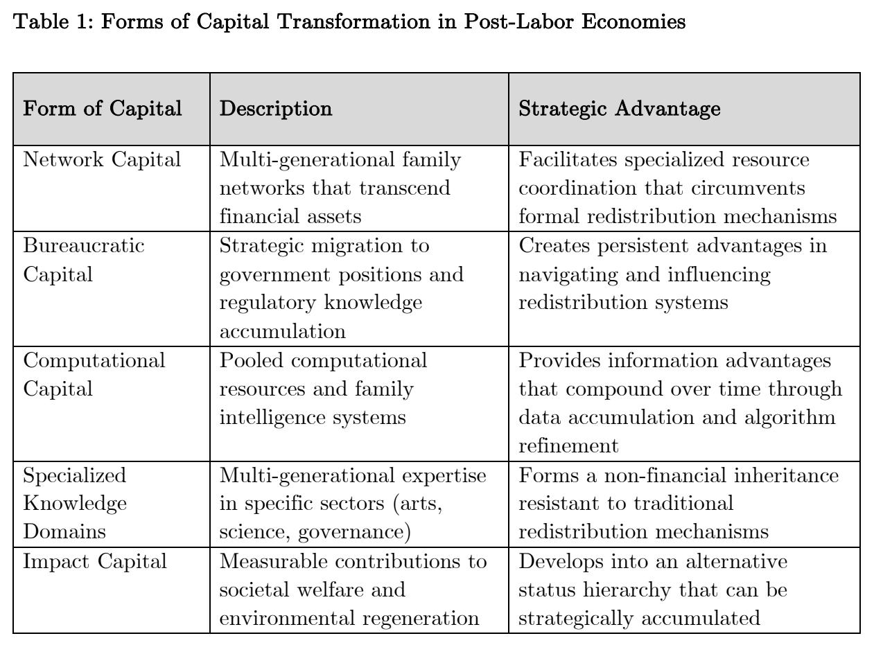 Network capital, computational capital, bureaucratic capital, impact capital, social capital, cultural capital - it’s all too much, but altogether a great exercise in exploring interclass dynamics when human labor has become a thing of the past.