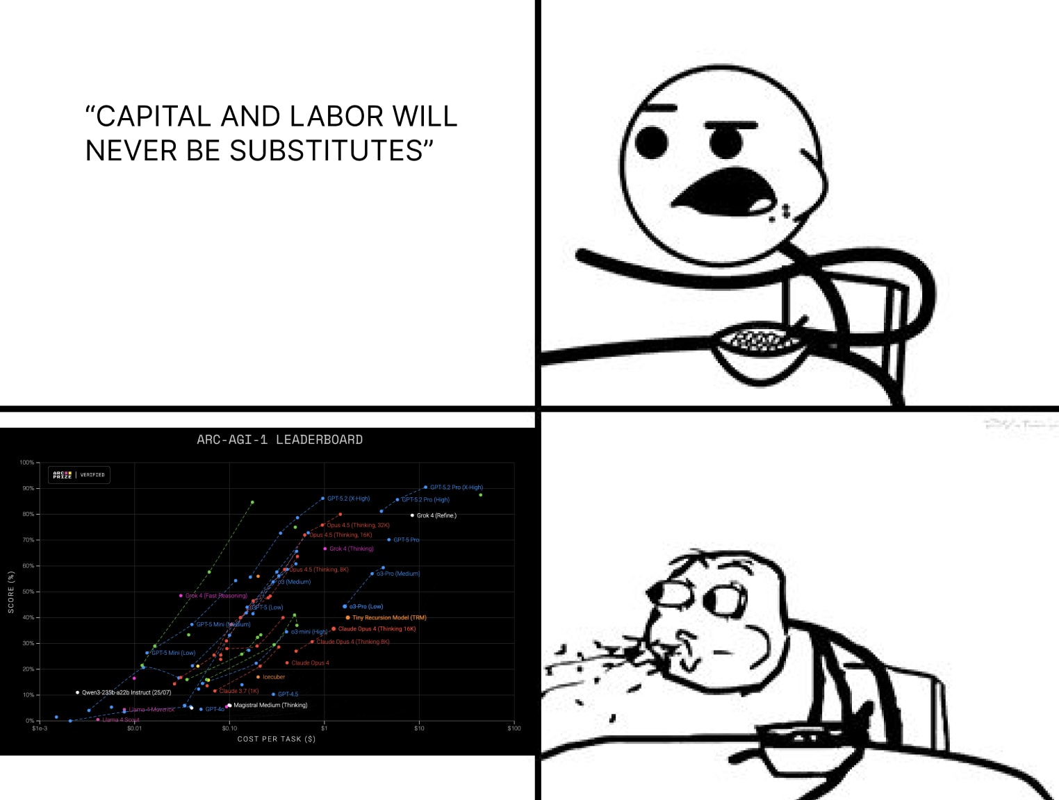 All it took was the winding down of GPT-4o to shine a light on not just AI psychosis as a certifiably real thing, but the reality that many humans are not only susceptible to modern LLMs’ persuasive/destructive capabilities, but relatively unaffected by this. GPT-4o is a bad model, but this didn’t matter to millions of users relying on its conversational capabilities as either a companion, lover, or something in-between. Most of the essay will center around economic and scaling-based arguments that pull us into a post-labor society, but keep the social/emotional angle in the back of your mind.