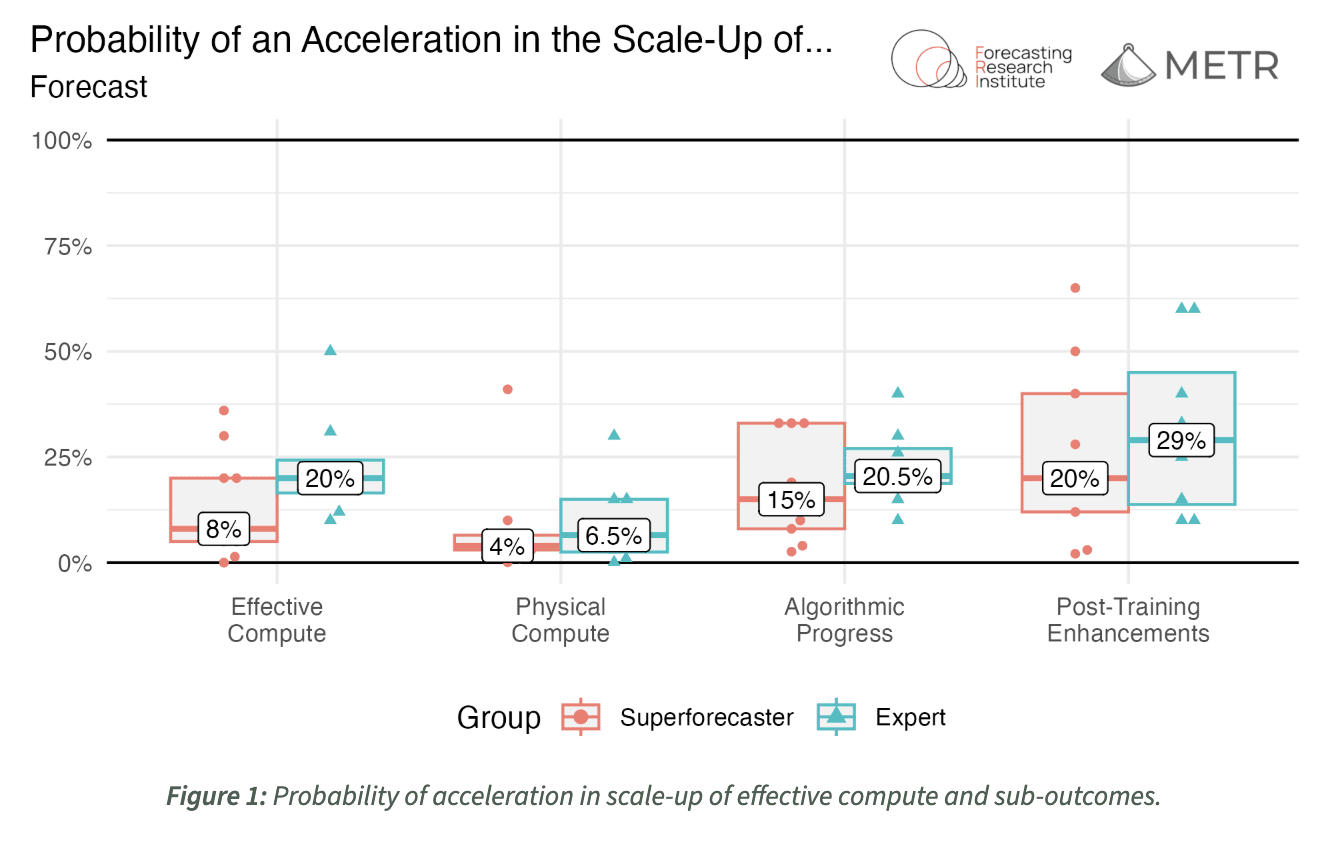 Is this possible? Or, is this going to happen, and how soon will it be? METR set out to determine this, enlisting 18 individuals - AI forecasting domain experts and superforecasters - to try and predict the likelihood of 3x AI improvements given a scenario of AI achieving parity with top human researchers, as well as the transformative impacts, whether positive or negative. More specifically, they wanted to determine the outcome if “during some two year period before 2029, the amount of progress that happened in one year between 2018 and 2024 now happens every 4 months.”