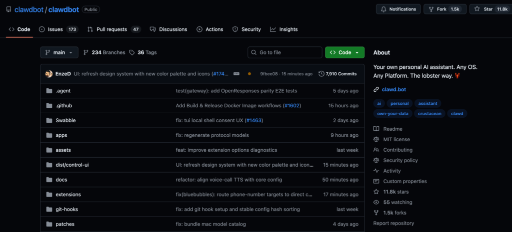 To date, Clawdbot has garnered over 11,800 stars and has more than 1,500 branches on GitHub, making it a fairly active open-source project. Its mascot is an adorable space lobster named Clawd.