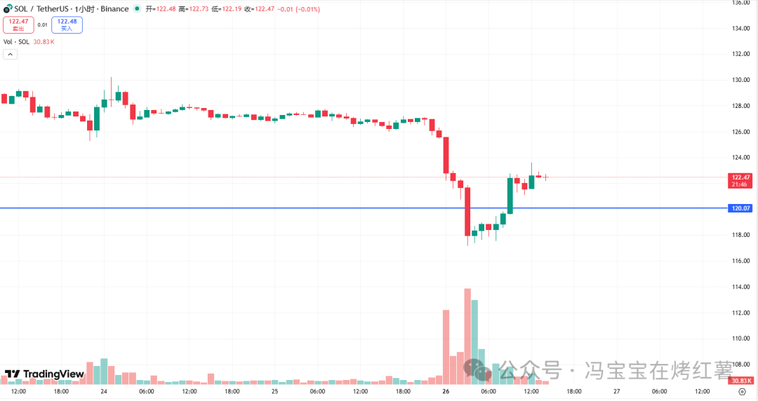 4. SOL: Price around 122, down 3.12% in 24 hours.